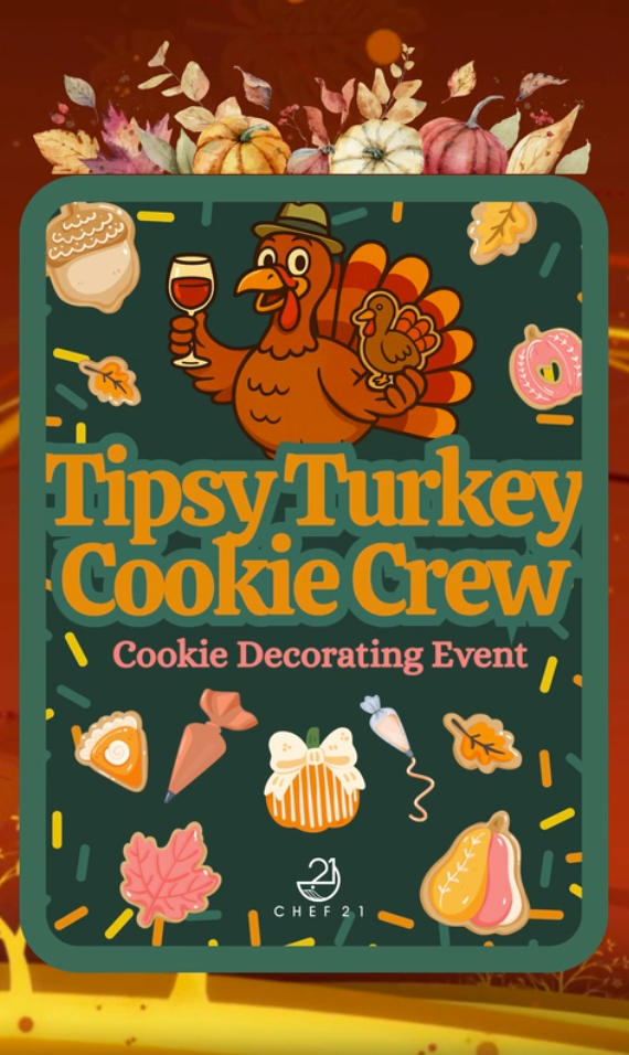 Tipsy Turkey Cookie Crew is here! $42 gets you 6 cookies, icing, and all the tools Taught by James Beard Nominee Chef Tania Cienfuegos